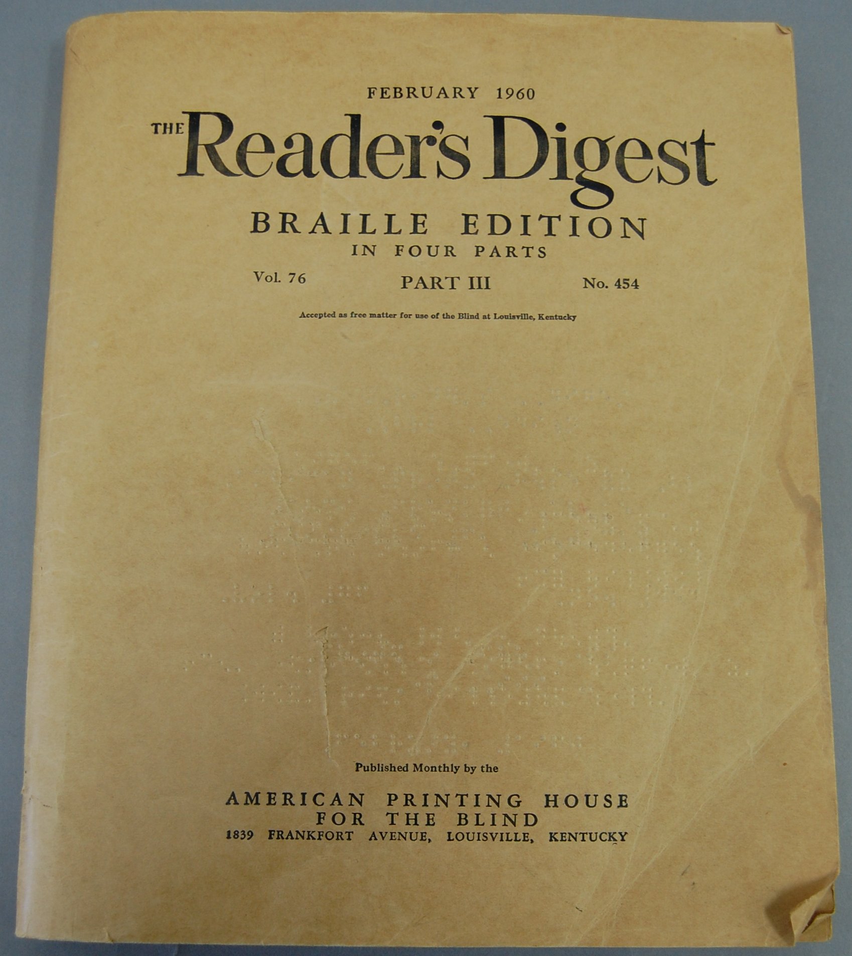 - Part III (pages 173-257) of the February 1960 issue. Published monthly in four parts. Grade 2 braille; interpoint. Reproduced from: Reader's Digest Association. Paper cover; saddle-stitched; brown paper.